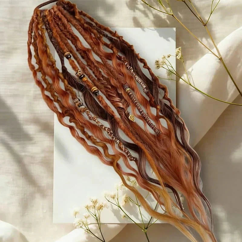Instant Boho Pferdeschwanz – Das perfekte Accessoire, um deinem Haar mühelos einen lässigen Boho- oder Beach-Look zu verleihen. In nur einer Minute verwandelst du deinen Look mit zusätzlichen Strukturen aus Dreadlocks, Perlen und natürlichen Elementen – egal, ob du einen entspannten, freien Stil oder etwas Abenteuerlicheres bevorzugst.